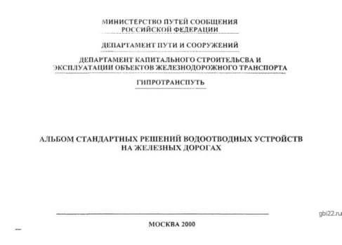 Альбом стандартных решений водоотводных устройств на железных дорогах.