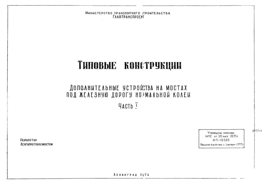| Название стандарта | Типовые конструкции. Дополнительные устройства на мостах под железную дорогу нормальной колеи. |