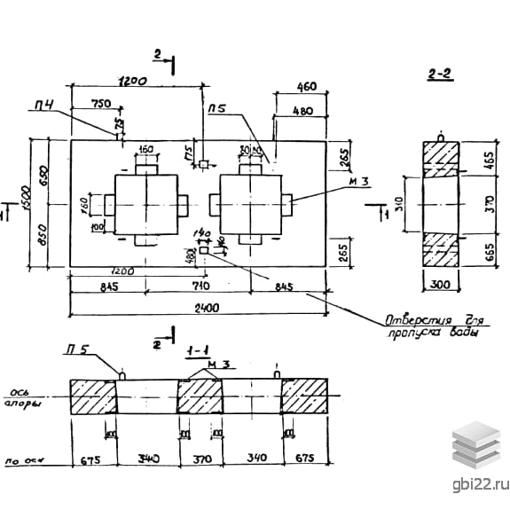 Опора представляет собой сборную железобетонную плиту прямоугольной формы с 1-2 сквозными отверстиями (прямоугольными или восьмигранными). Конструкция оснащена: