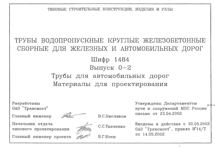 | Название стандарта | Трубы водопропускные круглые железобетонные сборные для железных и автомобильных дорог. |