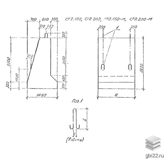Стенки труб СТ 2-150 размеры: длина, мм.: 1500, ширина, мм.: 1650, высота, мм.: 2850, вес, кг.: 10800, марка бетона: М250. Изделия относятся к категории Откосные стенки-Стенки труб и изготавливаются по технической документации согласно серия 3.501.1-179.94