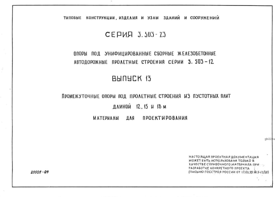 Опоры под унифицированные сборные железобетонные автодорожные пролетные строения серии 3.503-12.