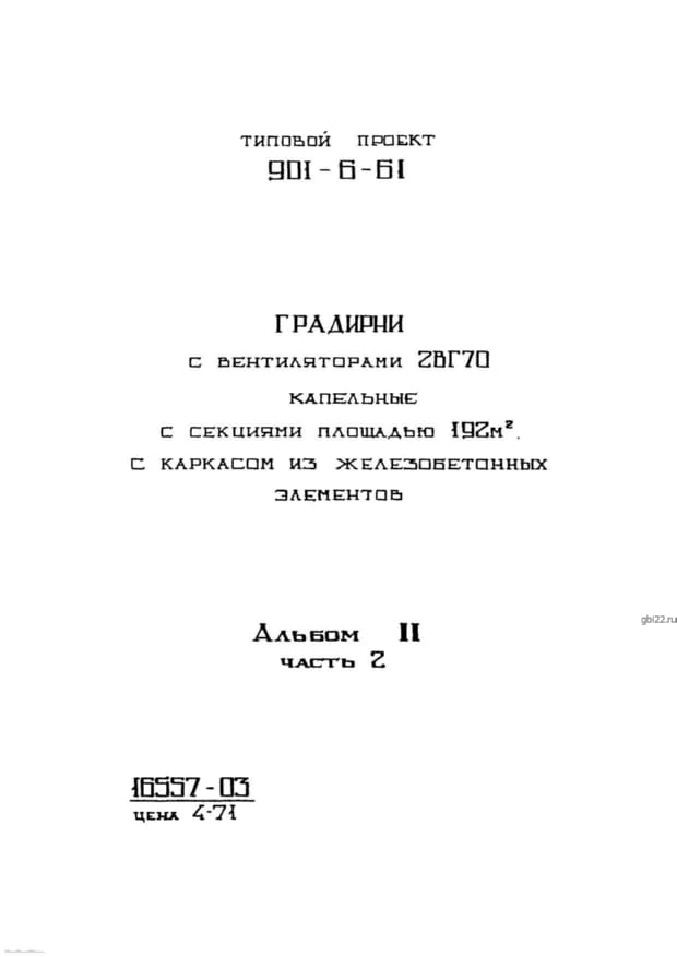 | Название стандарта | Градирни с вентиляторами 2ВГ70 капельные с секциями площадью 192 кв. м с каркасом из железобетонных элементов. |