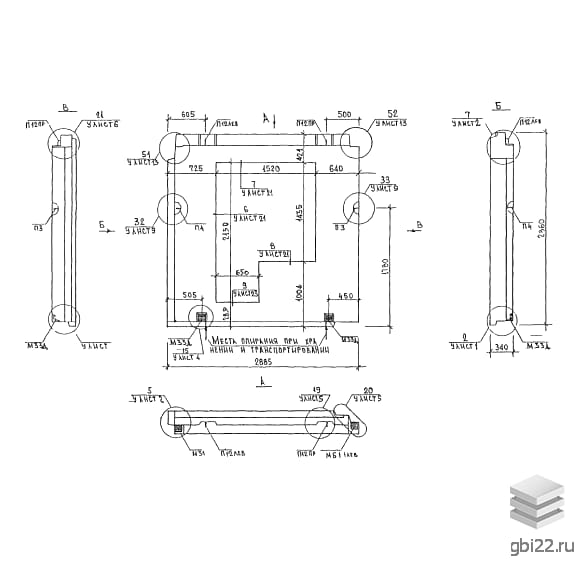Перевозка на панелевозах с фиксацией за внутренний слой. Складирование вертикально в кассетах с деревянными подкладками.