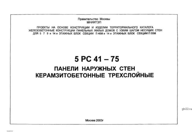 | Название стандарта | Панели наружных стен керамзитобетонные трехслойные. |