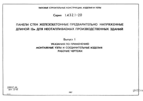| Название стандарта | Панели стен железобетонные предварительно напряженные длиной 12 м для неотапливаемых производственных зданий. |