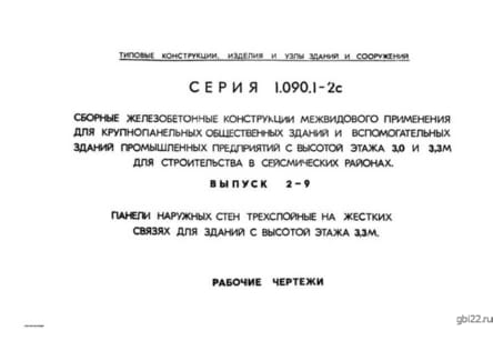 | Название стандарта | Сборные железобетонные конструкции межвидового применения для крупнопанельных общественных зданий и вспомогательных зданий промышленных предприятий с высотой этажа 3,0 и 3,3 м для строительства в сейсмических районах. |