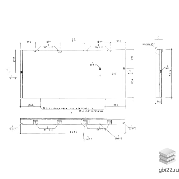 Перевозка осуществляется на панелевозах с надежной фиксацией. Хранение – вертикально в кассетах с деревянными прокладками под строповочными петлями.