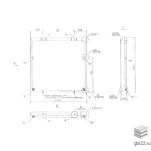 Подъём осуществляется только за строповочные петли с использованием балансирующих траверс. Хранение — вертикально в кассетах с деревянными подкладками, исключающими механические повреждения.