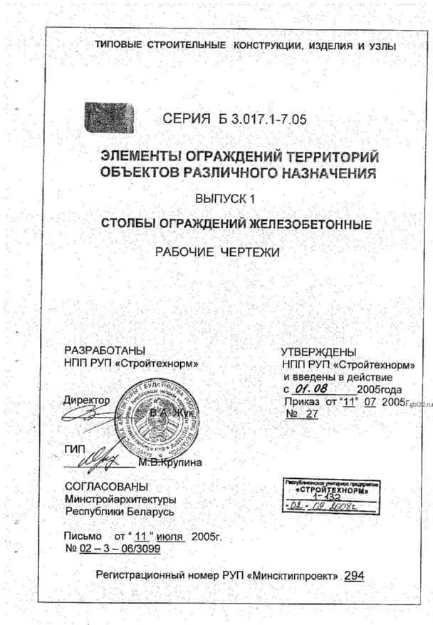 | Название стандарта | Элементы ограждений территорий объектов различного назначения. |