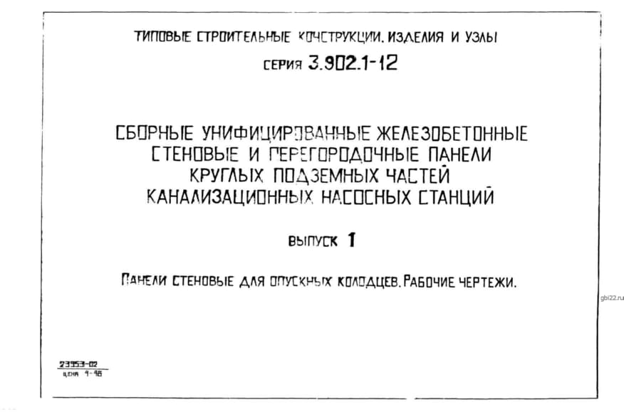 | Название стандарта | Сборные унифицированные железобетонные стеновые и перегородочные панели круглых подземных частей канализационных насосных станций. |