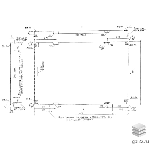 Панели перекрытия П 3654-2 (Альбом РМ 2283) – это высокопрочные унифицированные строительные конструкции прямоугольной формы, предназначенные для возведения многоэтажных зданий. На продольных сторонах расположены трапециевидные выемки со строповочными петлями, облегчающими монтаж и транспортировку. Дополнительная фиксация обеспечивается закладными элементами.