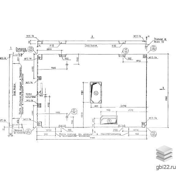 Железобетонные панели перекрытия П 3654-9 — это прямоугольные конструкции с трапециевидными пазами на боковых гранях для строповочных петель. Наличие закладных деталей обеспечивает надежное соединение с другими элементами здания.