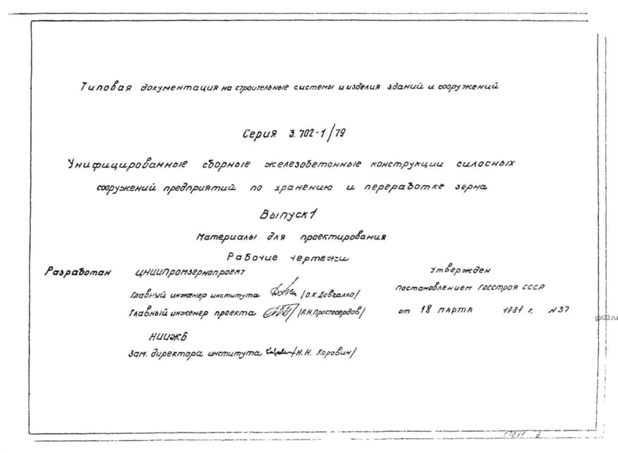 | Название стандарта | Унифицированные сборные железобетонные конструкции силосных сооружений предприятий по хранению и переработке зерна. |