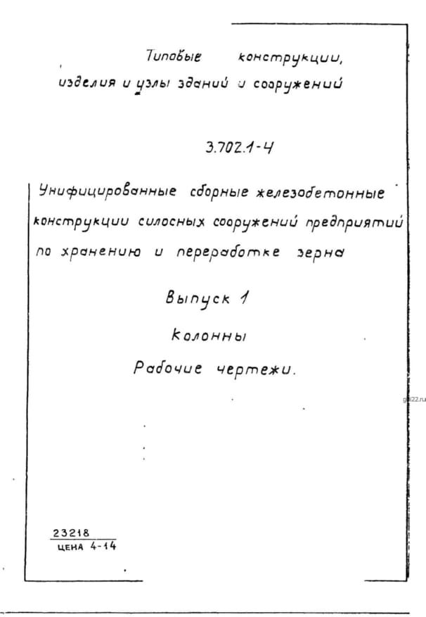 | Название стандарта | Унифицированные сборные железобетонные конструкции силосных сооружений предприятий по хранению и переработке зерна. |