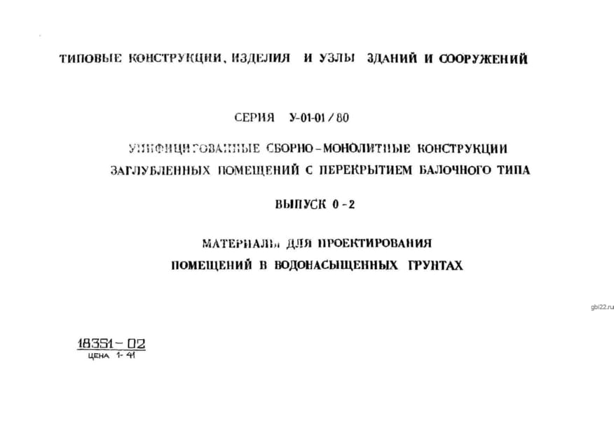 | Название стандарта | Унифицированные сборно-монолитные конструкции заглубленных помещений с перекрытием балочного типа. |