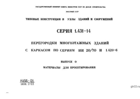 | Название стандарта | Перегородки многоэтажных зданий с каркасом по сериям ИИ 20/70 и 1.420-6. |