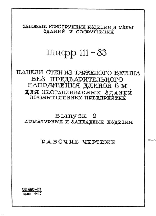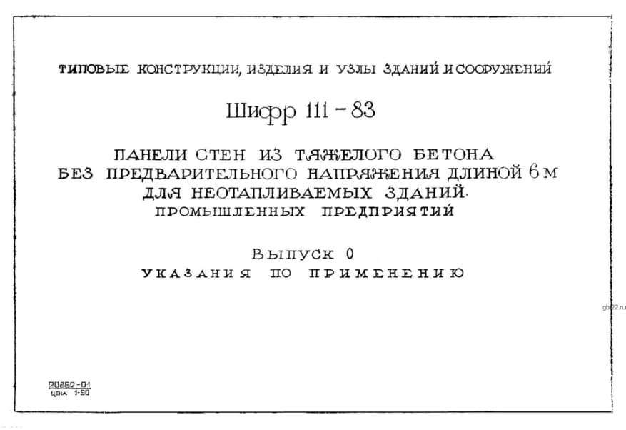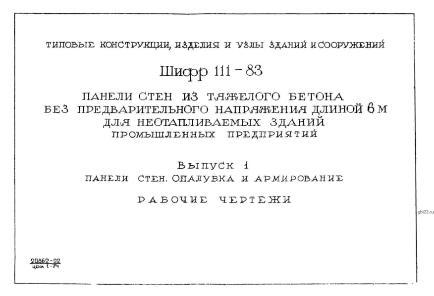 | Название стандарта | Панели стен из тяжелого бетона без предварительного напряжения длиной 6 м для неотапливаемых зданий промышленных предприятий. |