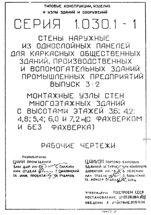 | Название стандарта | Стены наружные из однослойных панелей для каркасных общественных зданий, производственных и вспомогательных зданий промышленных предприятий. |