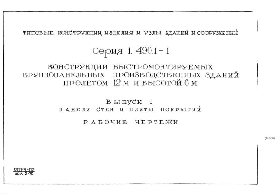 | Название стандарта | Конструкции быстромонтируемых крупнопанельных производственных зданий пролетом 12 м и высотой 6 м. |