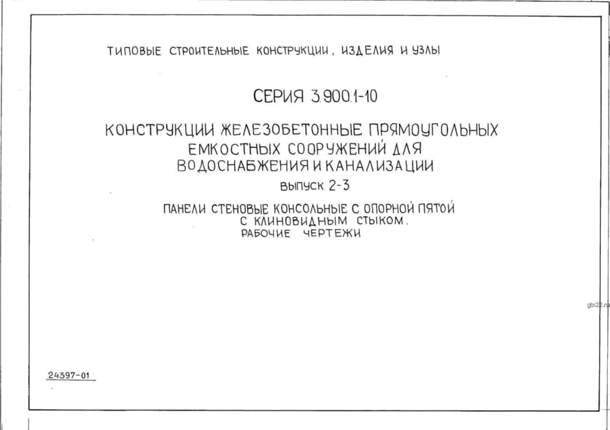 | Название стандарта | Конструкции железобетонные прямоугольные емкостных сооружений для водоснабжения и канализации. |