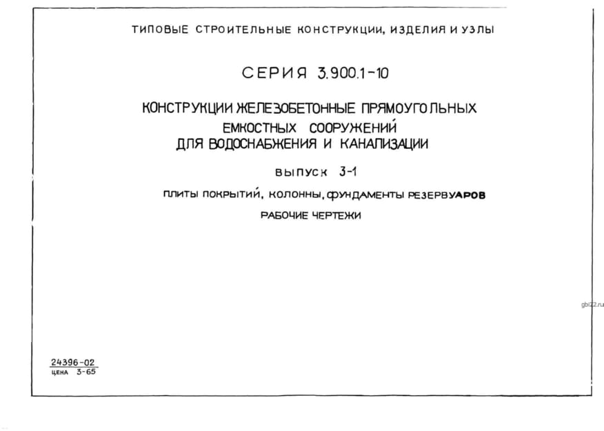 | Название стандарта | Конструкции железобетонные прямоугольные емкостных сооружений для водоснабжения и канализации. |