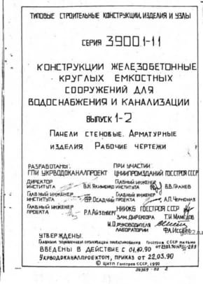 | Название стандарта | Конструкции железобетонные круглых емкостных сооружений для водоснабжения и канализации. |