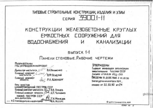 | Название стандарта | Конструкции железобетонные круглых емкостных сооружений для водоснабжения и канализации. |