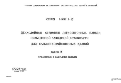 | Название стандарта | Двухслойные стеновые легкобетонные панели повышенной заводской готовности для сельскохозяйственных зданий. |