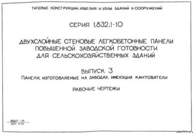 | Название стандарта | Двухслойные стеновые легкобетонные панели повышенной заводской готовности для сельскохозяйственных зданий. |