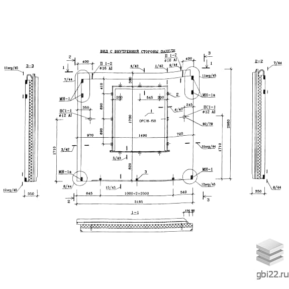 Наружные трехслойные панели Н 12-1 л (Альбом ИЖ 1.1-1) обладают прямоугольной формой и специальными элементами для монтажа в каркасных зданиях. Маркировка изделий расшифровывается следующим образом: