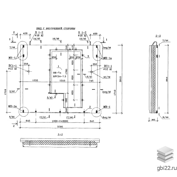 Изготовление ведется в горизонтальных формах фасадной стороной вниз. Допустимые отклонения указаны в Альбоме ИЖ 1.1-1. Внутренняя поверхность готова под финишную отделку.