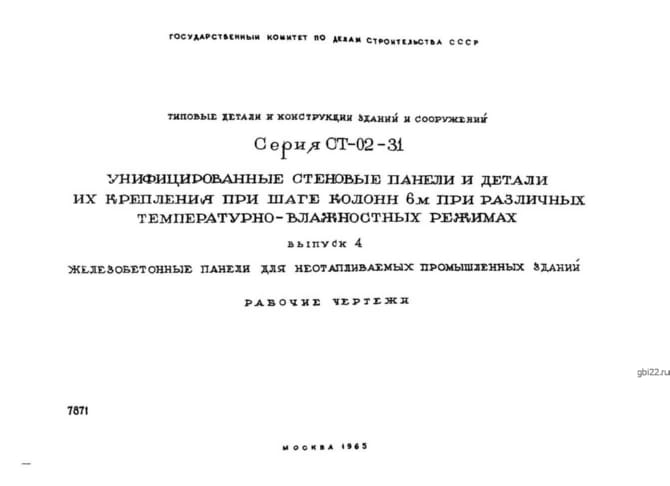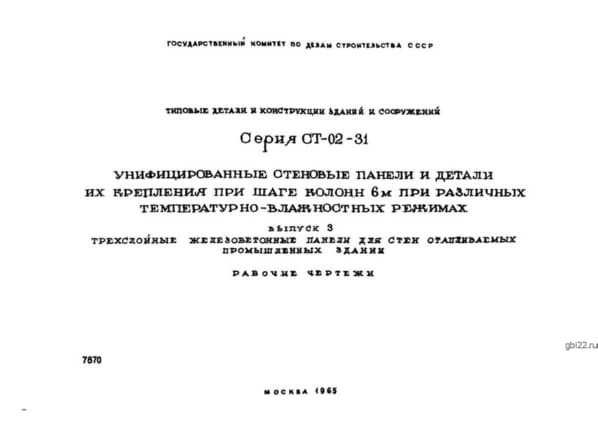 | Название стандарта | Унифицированные стеновые панели и детали их крепления при шаге колонн 6 м при различных температурно-влажностных режимах. |