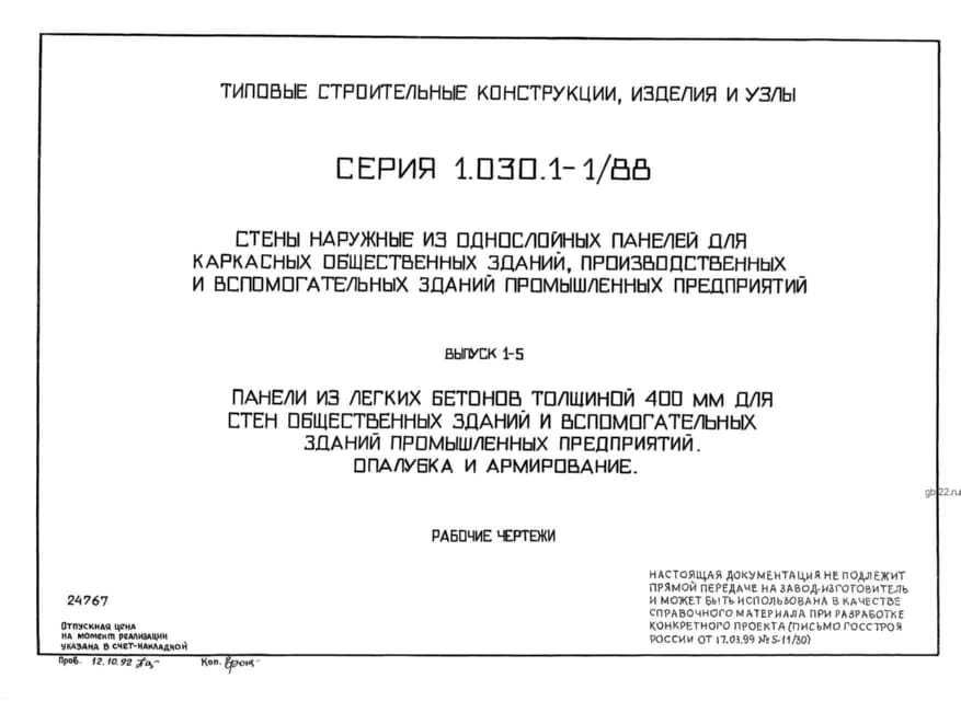 | Название стандарта | Стены наружные из однослойных панелей для каркасных общественных зданий, производственных и вспомогательных зданий промышленных предприятий. |