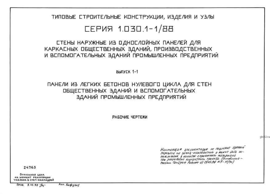 | Название стандарта | Стены наружные из однослойных панелей для каркасных общественных зданий, производственных и вспомогательных зданий промышленных предприятий. |