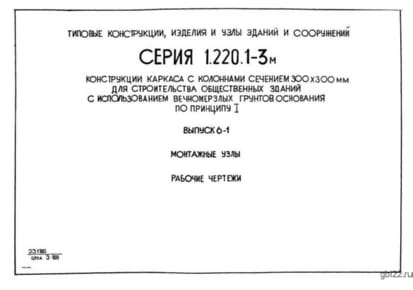 | Название стандарта | Конструкции каркаса с колоннами сечением 300х300 мм для строительства общественных зданий с использованием вечномерзлых грунтов основания по принципу 1. |