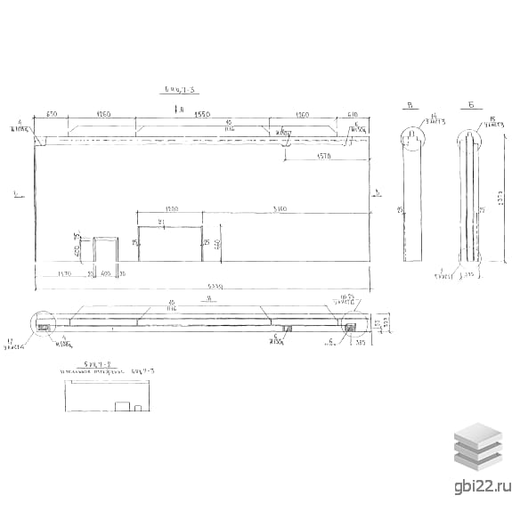 Прямоугольные железобетонные панели с тремя слоями, соединенными армированными ребрами. Верхняя часть оснащена выступом, возможны технологические отверстия в соответствии с проектом.