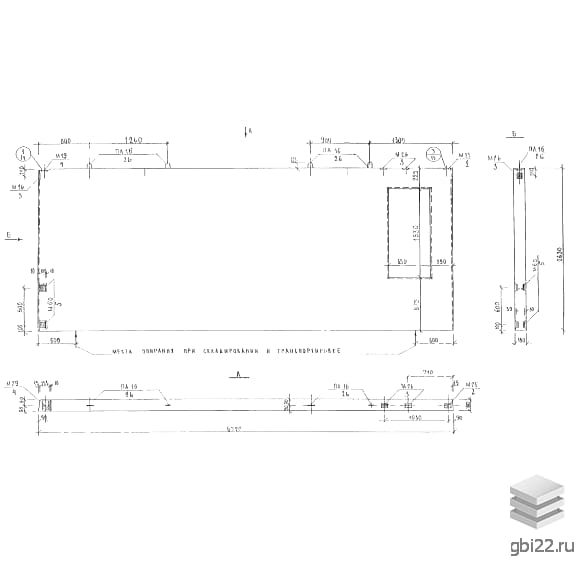 Перевозка специализированным транспортом с фиксацией. Складирование вертикально на проектные опоры. Погрузка строго за монтажные петли с применением траверс.