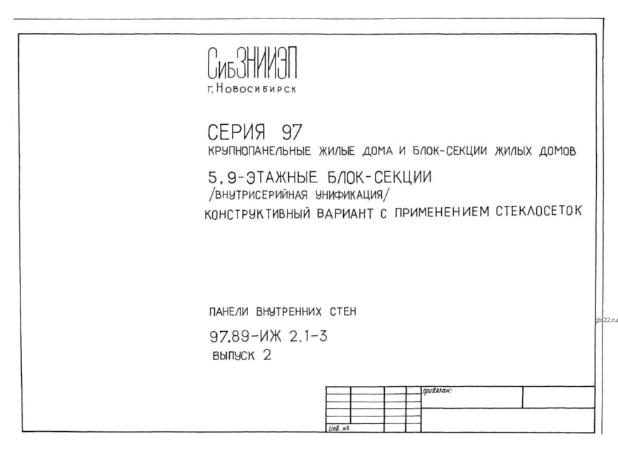 | Название стандарта | Крупнопанельные жилые дома и блок-секции жилых домов. 5, 9-этажные блок секции (унифицированные параметры арматурных изделий). |