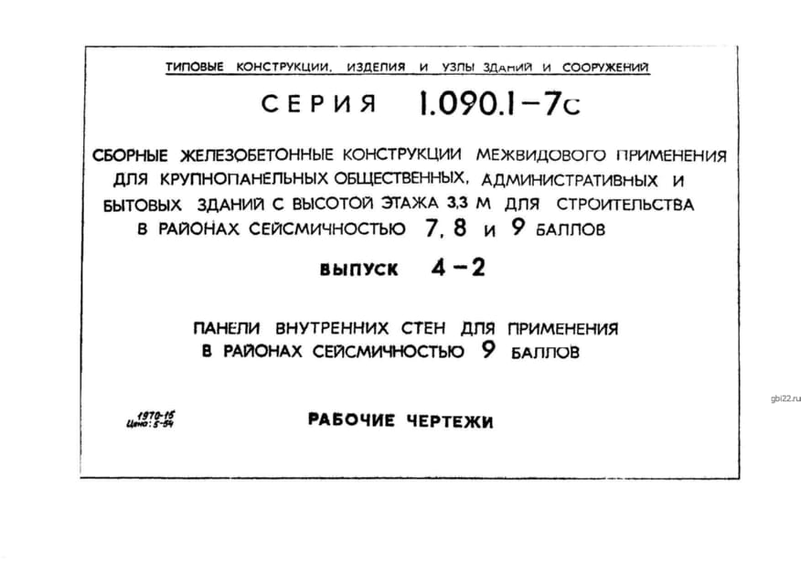 | Название стандарта | Сборные железобетонные конструкции межвидового применения для крупнопанельных общественных, административных и бытовых зданий с высотой этажа 3,3 м для строительства в районах сейсмичностью 7, 8, 9 баллов. |