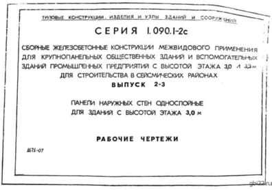 | Название стандарта | Сборные железобетонные конструкции межвидового применения для крупнопанельных общественных зданий и вспомогательных зданий промышленных предприятий с высотой этажа 3,0 и 3,3 м для строительства в сейсмических районах. |