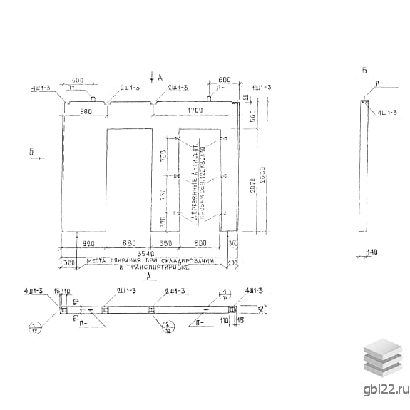 Панели относятся к категории прочных унифицированных стройматериалов. Конструкции имеют прямоугольную форму сплошного сечения с углублениями и отверстиями для формирования дверных проемов. На торцах расположены шпонки для надежного соединения в каркасе здания.