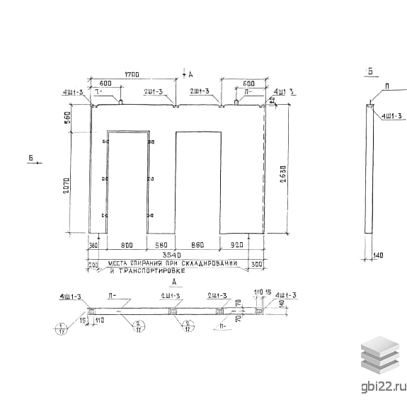 Панели представляют собой прямоугольные монолитные конструкции с углублениями и отверстиями для дверных проемов. На торцах расположены шпонки для надежного соединения в каркасе здания.