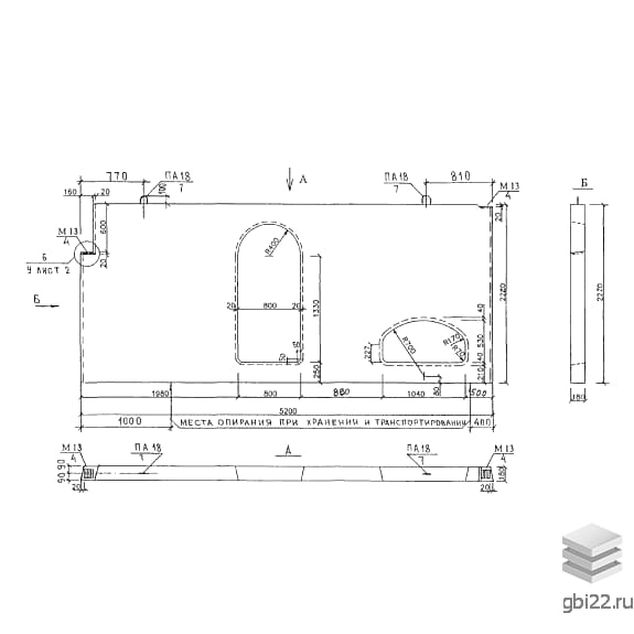 Железобетонные панели прямоугольной формы с технологическими вырезами для монтажа дверей, окон и инженерных коммуникаций. Геометрия соответствует типоразмеру.