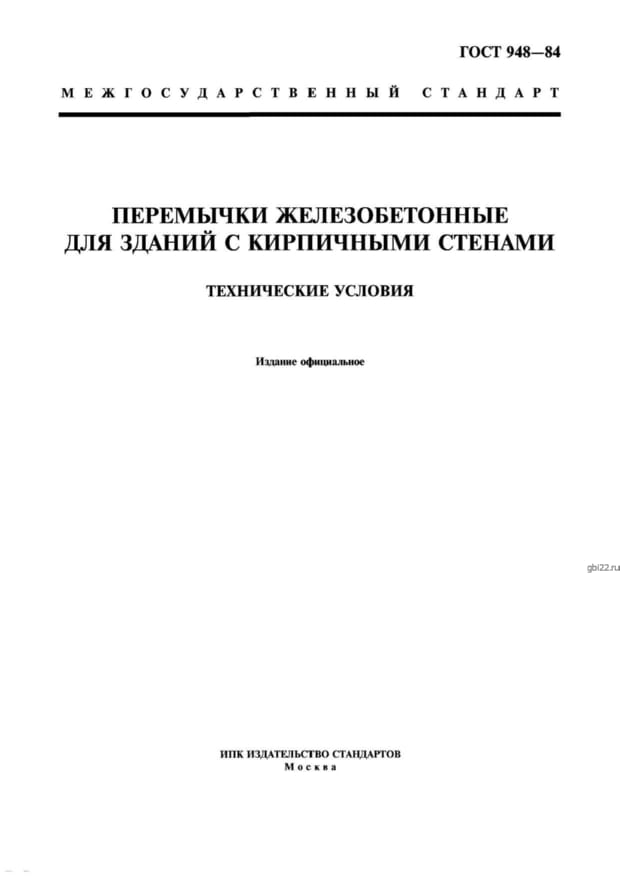 | Название стандарта | Перемычки железобетонные для зданий с кирпичными стенами. Технические условия. |