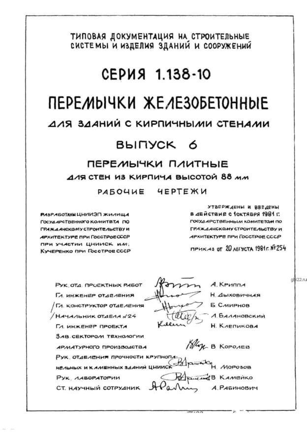 | Название стандарта | Перемычки железобетонные для зданий с кирпичными стенами. |