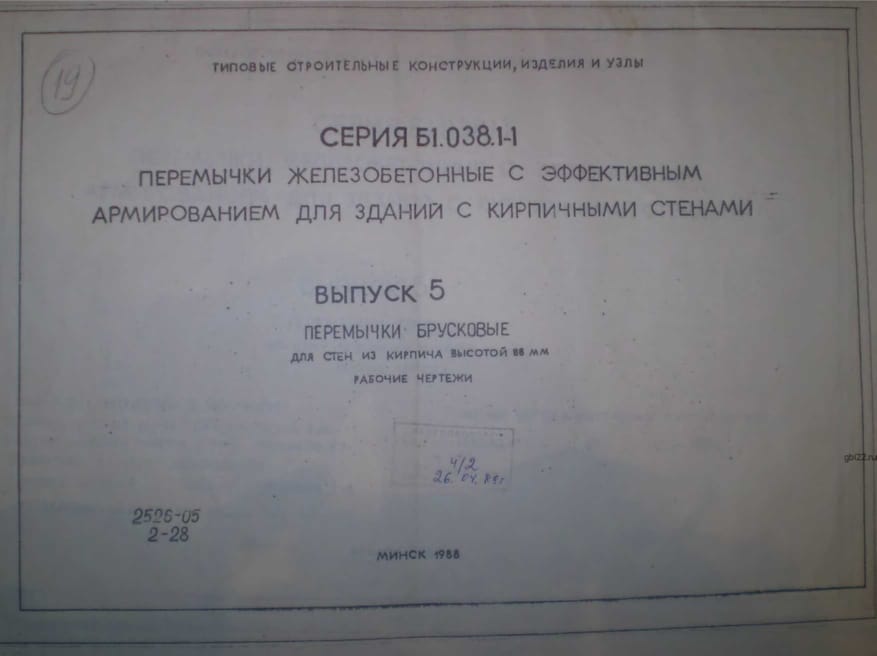 | Название стандарта | Перемычки железобетонные с эффективным армированием для зданий с кирпичными стенами. |