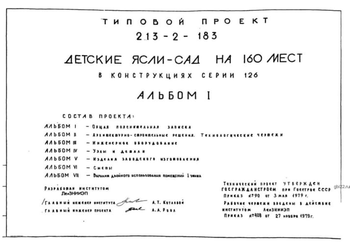 | Название стандарта | Детские ясли-сад на 160 мест в конструкциях серии 126. |
