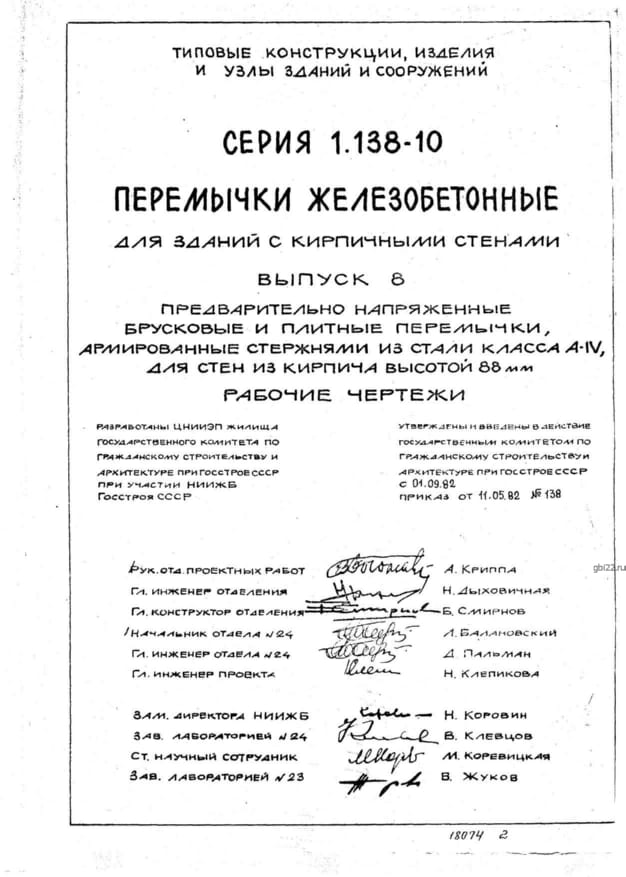 | Название стандарта | Перемычки железобетонные для зданий с кирпичными стенами. |