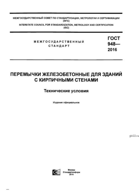 | Название стандарта | Перемычки железобетонные для зданий с кирпичными стенами. Технические условия. |